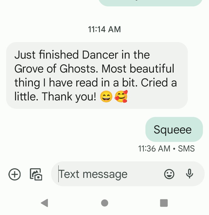 Just sharing a screenshot I got yesterday from a friend who bought my Minstrels of Skaythe series at RadCon. I’m going to cry a little, too.